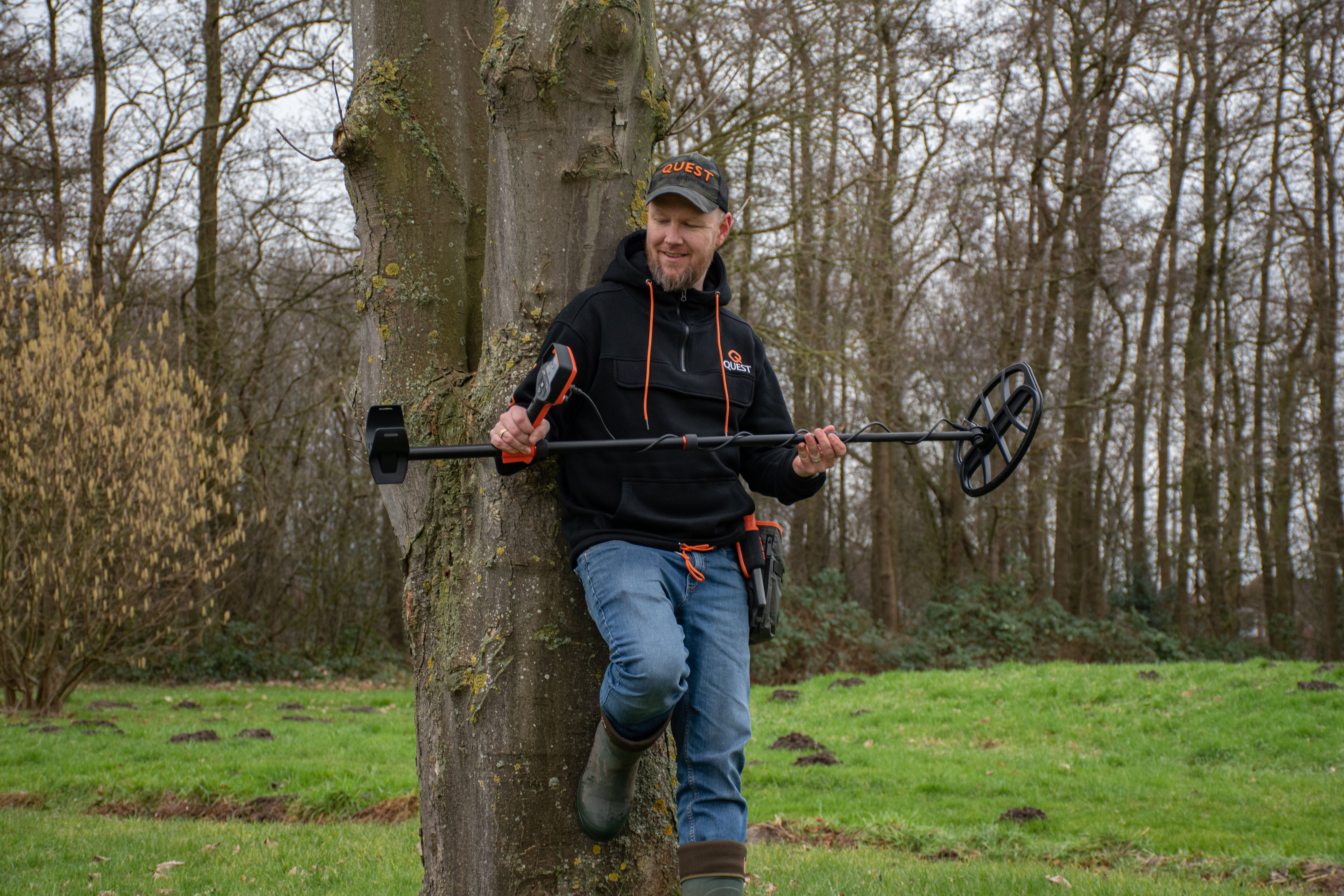 Quest V80 metaaldetector GRATIS X-pointer Max met magic holster Waterdichte 28 x 26 cm (11" x 10") DD Blizzard11 zoekspoel Beschermschotel (Al op de zoekspoel bevestigd.) Draadloze Quest WireFree Pro hoofdtelefoon Coinpad Detectorwereld Oplaadkabel Handleiding 2 jaar garantie Videos VIDEO