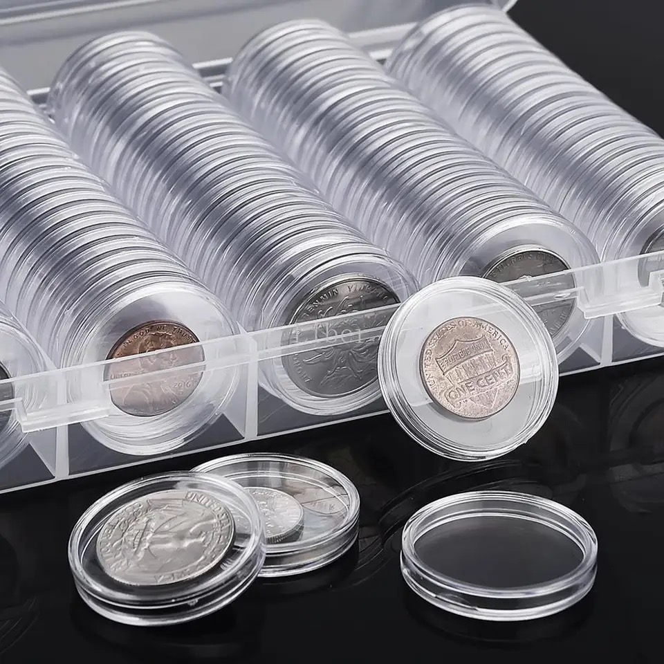 Doorzichte kunststof box met 100 doorzichtige munthouders!